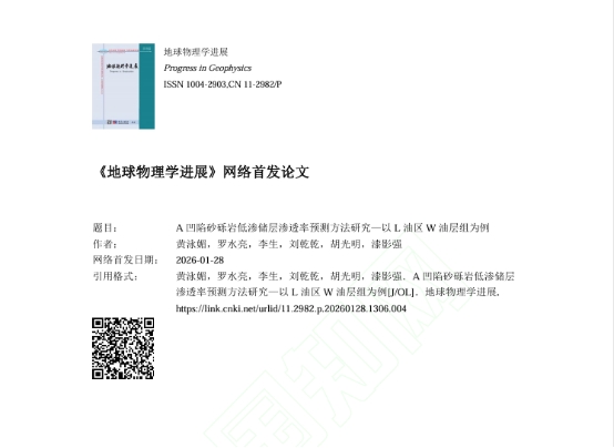 论文信息:黄泳媚,罗水亮,李生,等. A凹陷砂砾岩低渗储层渗透率预测方法研究—以L油区W油层组为例[J/OL].地球物理学进展, 2026.