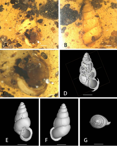 文章基于四块白垩纪中期缅甸克钦胡康河谷的琥珀化石标本,运用光学显微镜、显微CT扫描以及计算机三维重建技术的综合形态学研究方法发现了奇迹琥珀裂唇螺的化石新纪录,修订了该种的分类鉴定特征。同时系统综述了裂唇螺属现生和化石种的地理分布,以及不同种间的形态特征比较。