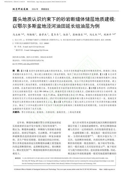 yl7703永利集团硕士研究生马玉林以第一作者身份在中文核心期刊《地质科技通报》上发表题为“露头地质认识约束下的砂岩断缝体储层地质建模:以鄂尔多斯盆地泾河油田延长组油层为例”的研究论文。yl7703永利集团为论文第一署名单位,硕士生马玉林为第一作者,刘洪平副教授为通讯作者。