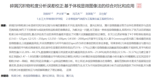 碎屑沉积物粒度分析是研究其沉积过程与环境的重要技术手段,但现有筛分法、激光衍射法、薄片显微图像法等方法存在原理差异与适用范围局限,制约了不同粒级与成因类型样品粒度的准确表征。针对这一难题,研究团队提出了一种体视显微图像法,系统对比了各方法在碎屑岩粒度分析中的适用性,重点评估了系统性偏差并建立了薄片法测量数据的校正模型。