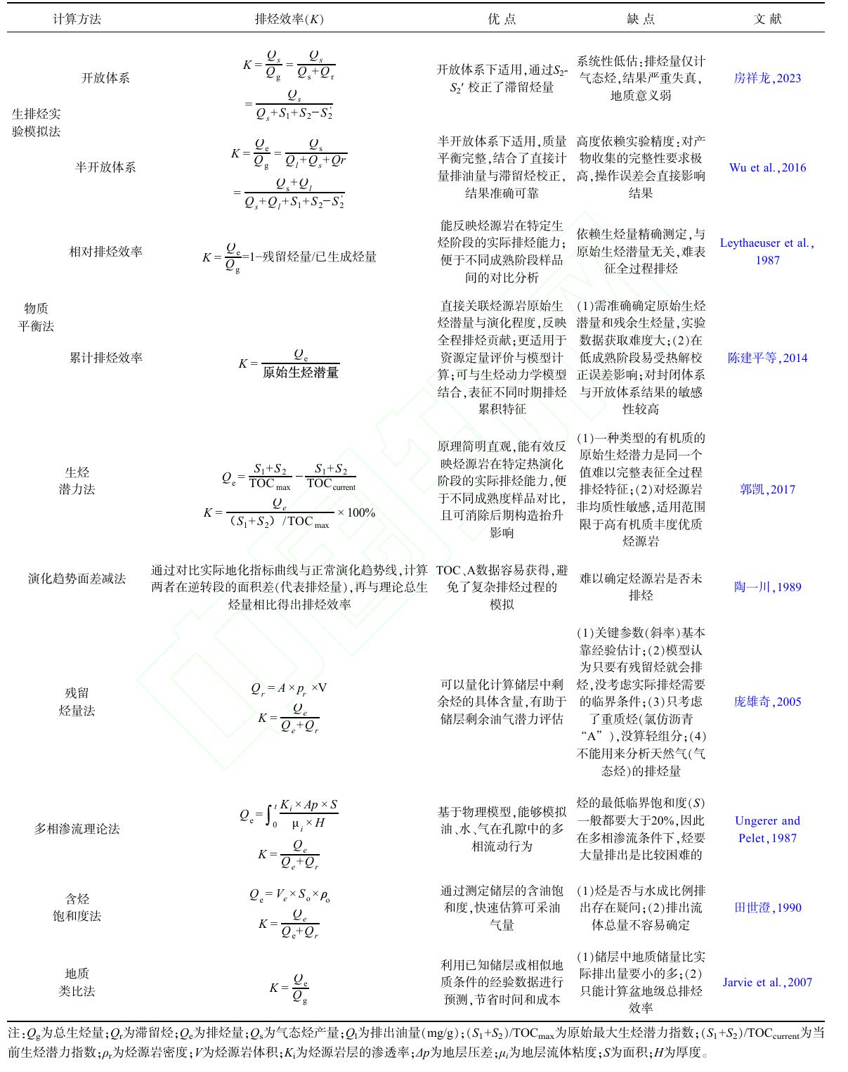 表1 计算排烃效率的不同方法