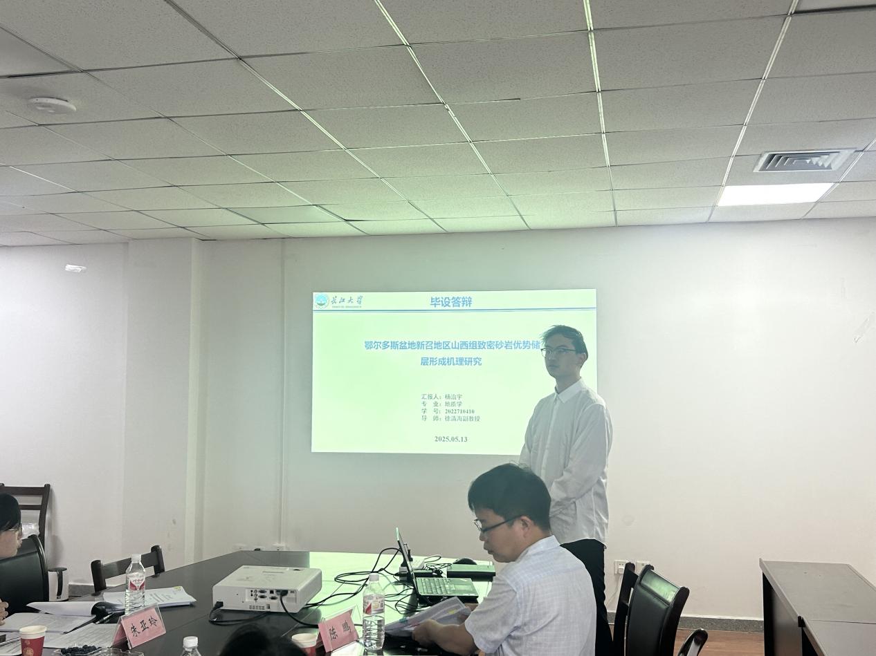 (通讯员 杨治宇)2025年5月13日下午14:00,yl7703永利集团硕士研究生杨治宇的学位论文答辩在石油科技大楼C307会议室顺利举行。答辩委员会由校内外专家组成,中国地质大学(武汉)博士生导师杨锐教授担任主席,yl7703永利集团冯文杰副教授、陈鹏副教授、王喜鑫副教授及陈梅副教授担任委员,朱亚玲讲师担任答辩秘书。