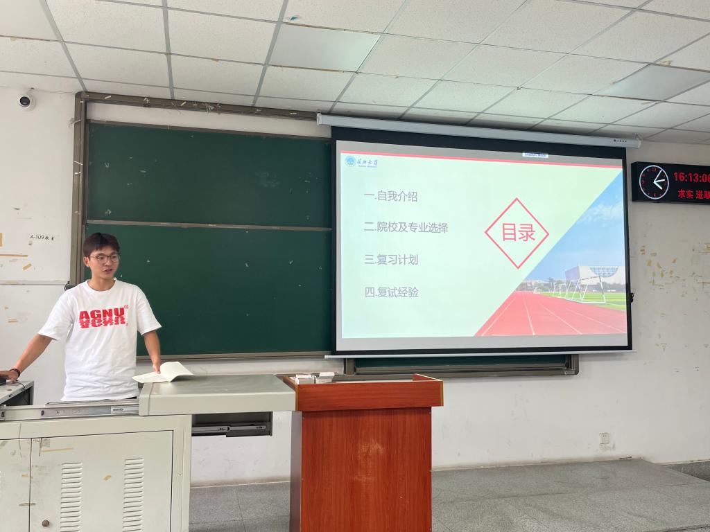 (通讯员 张梦琪)为助力我院20级本科生进一步明确考研目标、提高考研热情、增长考研知识,我院于6月7日14:30在A-109教室举行了考研经验分享会。来自19级6位成功上岸的同学用自己的切身经历为大家提供了详细的信息收集、院校选择、复习计划、复试准备和压力调节等方面的分享和交流。分享会由20级辅导员郭霖老师主持,共近百名同学参会。