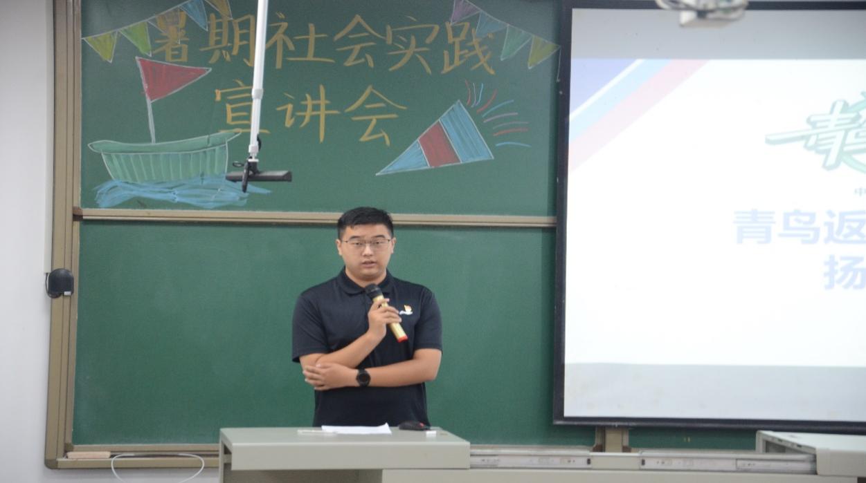 我院“后浪”暑期社会实践队党宇烁同学分享了他参加学院团委联合蔡甸区高湖社区开展的“暑假学堂”系列志愿服务活动。在本次活动中,志愿队通过开展地质科普讲座、暑期安全科普和心理健康教育等一系列志愿活动,同时走访社区困难家庭,为社区发展注入青年活力,展现了青年责任与担当。最后他鼓励我们积极投身社会实践中,这对我们和小朋友们的成长以及未来的发展都具有重要意义。