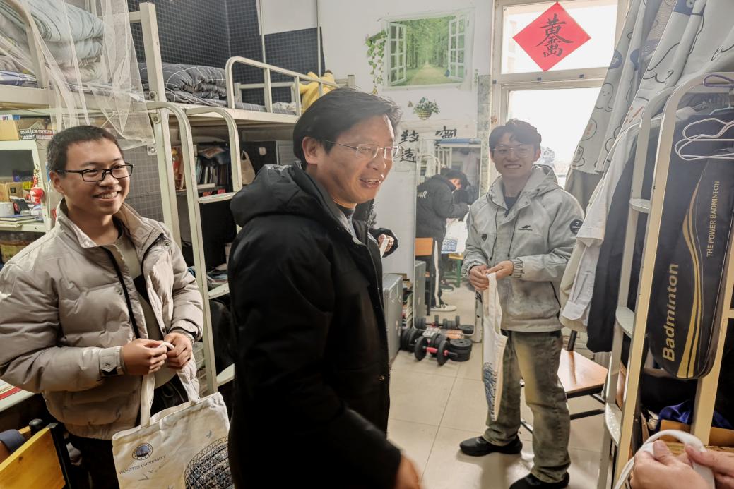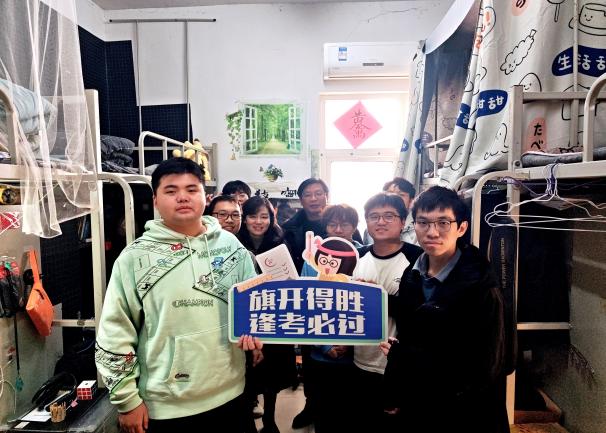 (通讯员 李雨泽 魏靖弢)随着2025年考研初试日期的临近,在紧张备考的冬日,我院考研学子的复习热情却越发激昂。为鼓励和关心我院考研学子,学院领导、21级班主任及学工办全体辅导员于12月17日中午走访2021级“备战”寝室,送去考前关怀,为同学们带来一份特别的温暖。