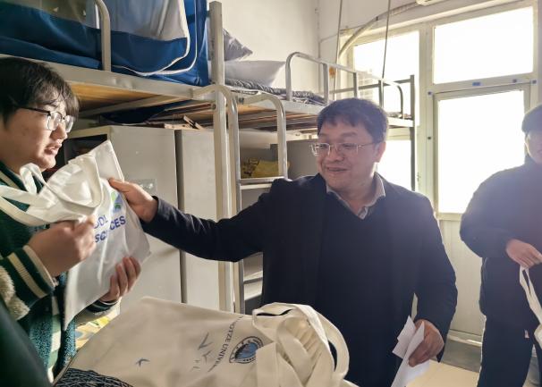 老师们走进学生宿舍,为考研同学鼓劲助威,提醒大家在最后冲刺阶段合理调整作息,保证饮食健康,注意防寒保暖和出行安全,以饱满的精神状态迎接考试。地信(产业)22101班班主任刘远刚老师感叹:“这次‘考研送温暖’活动不仅让同学们感受到学院老师们的殷殷关切,提振了同学们对于考试的信心,更强化了师生情谊,充分诠释了我院的“育人温度”。