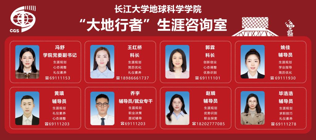 立足地学学科特色,结合行业发展动态,为同学们提供个性化、一对一的支持,助力大家探索职业兴趣、提升求职技能、科学决策未来,实现从校园到社会的顺利过渡与长远发展。
