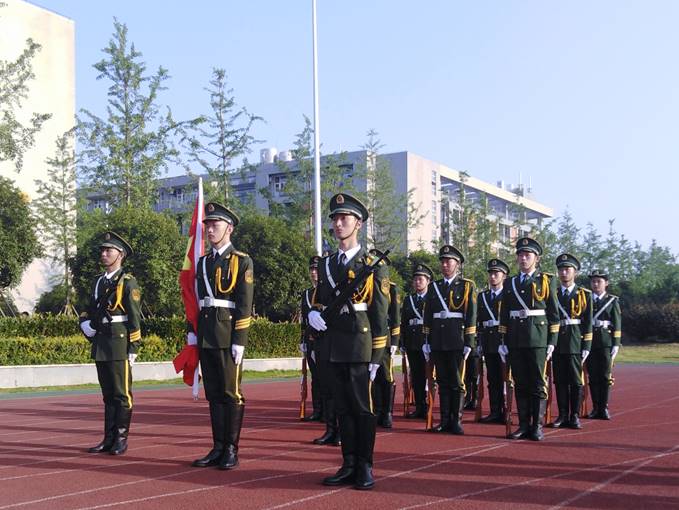 晨曦微露,国旗护卫队迈着铿锵的步伐来到了国旗台前,在激昂的《义勇军进行曲》中旗手振臂一挥,五星红旗徐徐展开,冉冉升起。