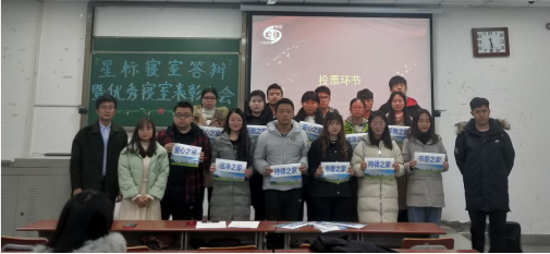 最后,进入到了此次活动的最后颁奖环节,派发五家寝室“优秀宿舍门贴”和宣布星标寝室得主。这五个寝室分别是“爱心之星”校内4栋306,“洁净之星”校内4栋207,“持律之星”校内4栋208,“书香之星”校内4栋333和“乐雅之星”校内4栋304.