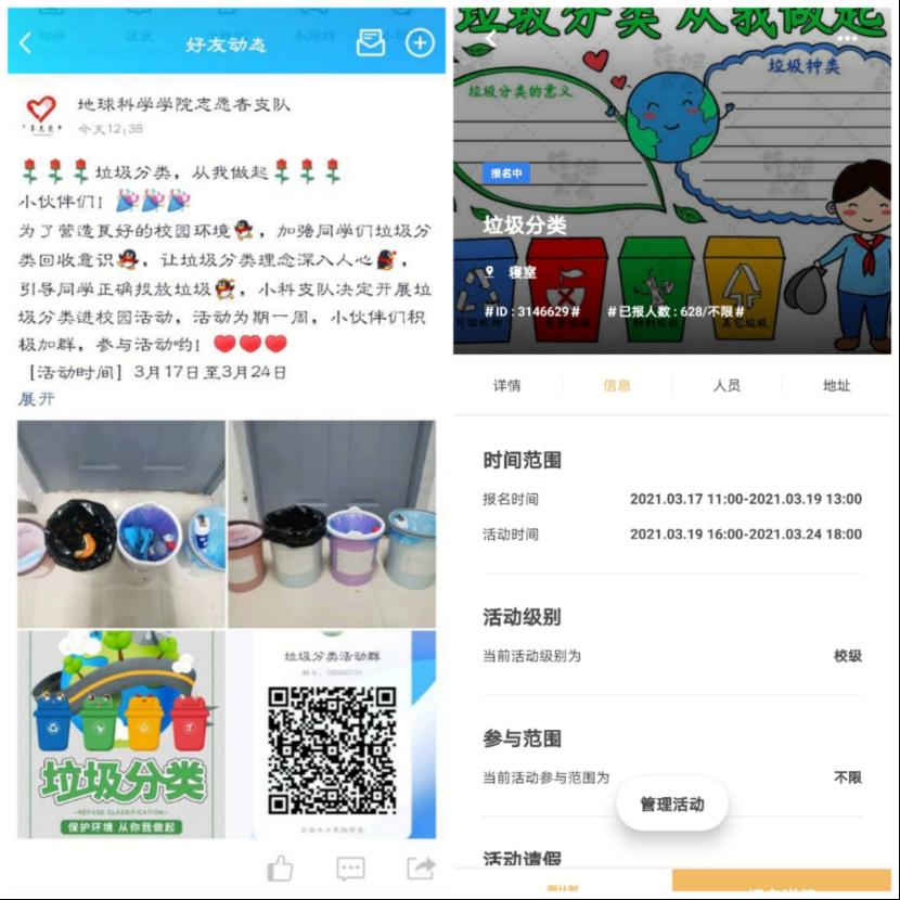 3月17日开始,我校地科院实践部各成员开始着手策划“垃圾分类”活动。3月18日实践部成员在地科院官Q上宣发此次活动,并在到梦空间发布活动,动员学生积极参与。