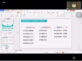 (通讯员 陈小虎)为进一步提高21级新生的安全意识,11月22日19:00我院334名新生在各班自习室,通过腾讯会议集体参加“生命与安全教育”系列讲座。讲座内容覆盖12类安全主题,武汉校区5个学院6名新生辅导员依次开讲。