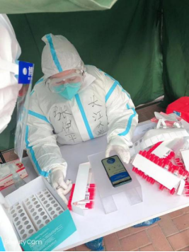 每天凌晨五点半,张伊平就会来到居委会的核酸检测点,进行居民身份信息登记,维护核酸检测现场秩序、发放核酸检测管、信息录入等工作,不到下午核酸检测时间结束,防护服里已经满是汗水。“您好,请把身份证正面朝上放入卡槽中”“您的身份信息已经录入,请拿好试管去后方找医生进行检测”...是她每天做志愿者时说的最多的话。偶尔遇到忘带身份证的居民和没有身份证的小孩,她都会在耐心询问后手动录入并核实,她的耐心和细致受到了社区的高度好评。
