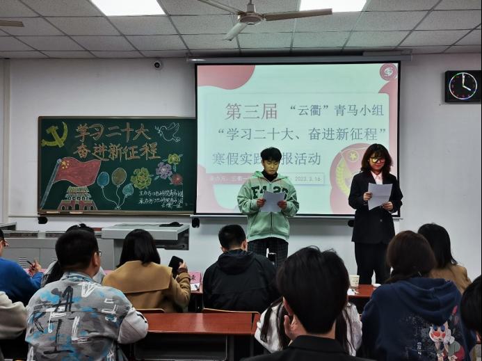 (通讯员 史晓岩)2022年10月16日在北京举行了党的第二十次全国代表大会,为了学习和贯彻习近平总书记的重要讲话和会议精神,我院“云衢”青马学习小组开展了以领会党的第二十次全国代表大会精神为主要任务的寒假实践活动,并于2023年3月16日下午在教学楼B204教室进行了第一场交流汇报。