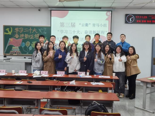 本次活动的主题为“学习二十大,奋进新征程”,由“云衢”二组组员进行答辩,“云衢”一组组员进行筹办工作,院团委书记郭霖老师,学工办黄瑱老师、姚佳老师参会。