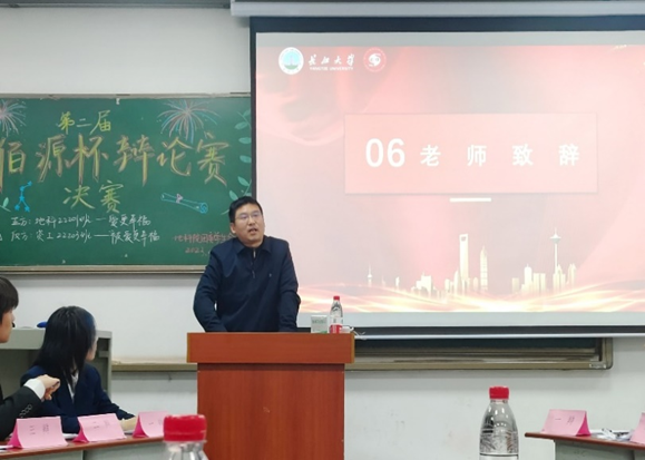 随后,江山老师对活动进行总结。他表示今天的活动仿佛让他重返大学时光,辩论赛是每年学校最热闹的时候,整个学校都充满着青春气息和积极向上的氛围。他高度肯定了本次活动的目的和意义,希望同学们以辩论赛为契机,多参加学校和学院举办的各项活动,走出宿舍,勤于思考,努力提高自己的思辨能力,展示地科学子敢闯敢拼的精神风貌。