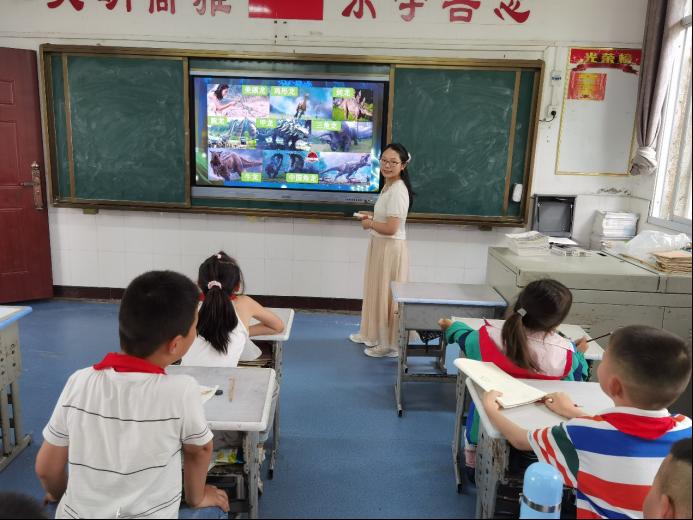 我院资工(卓越)22101班贾凡琛同学是本次活动主讲人。她用生动有趣的语言、大量丰富的图片和精彩的视频,向孩子们讲述了恐龙的起源、种类、生活习性等方面的知识。志愿者们还通过现场模拟、互动问答等方式,让学生们亲身感受到恐龙以及地史的魅力。