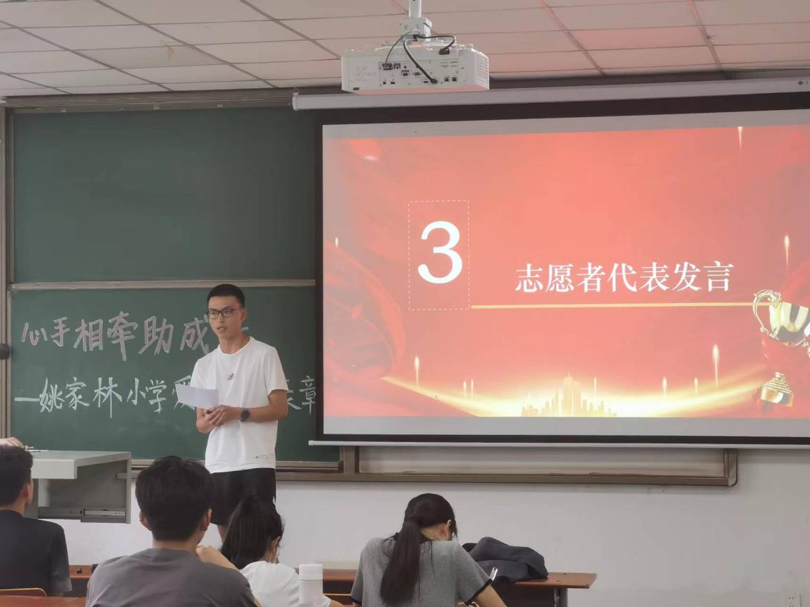 志愿者佘彭宇同学听完两位志愿者代表的分享后表示收获满满,他说:“支教不仅仅是和孩子们一起学习,也和他们一起做朋友。回想这段时间的支教生活,满脑子都是学生们上课时渴望知识、嬉戏打闹的模样。今后我也会继续参与到此活动中!”