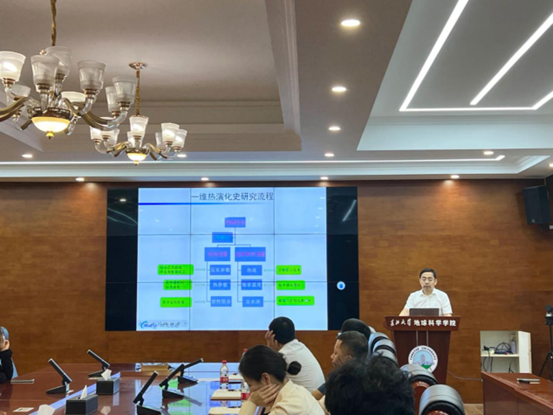 会议第一项,许教授作《油气动态定量成藏模拟新模式及在地质研究中的应用实例》专题报告。首先,许教授向师生们分享了个人求学、工作及创业经历。他谈到自己曾经在胜利油田分公司勘探开发研究院、斯伦贝谢中国(北京)公司任工程师一职,目前担任东北石油大学客座教授、坤元信达公司总经理。随后,他就地质建模方面知识做详细介绍,带领师生了解含油气系统模拟的六大进展与国内应用的四大误区,并向大家做实例展示。