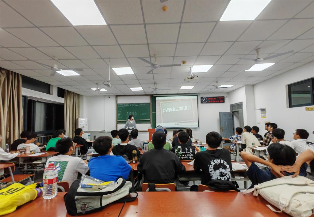 班会由各班班长负责。班长们从什么是网络诈骗、常见的网络诈骗手段、网络诈骗的危害以及如何防治网络诈骗四个方面入手,为同学们进行了详细讲解。各班级还采用案例讲解、观看视频等方式,学习了“防网络诈骗提示”。最后,各班班长结合身边同学的真实案例提醒学生提高警惕,吸取经验教训,努力识别各种形式的骗局,最大限度保障自己的人身财产安全。
