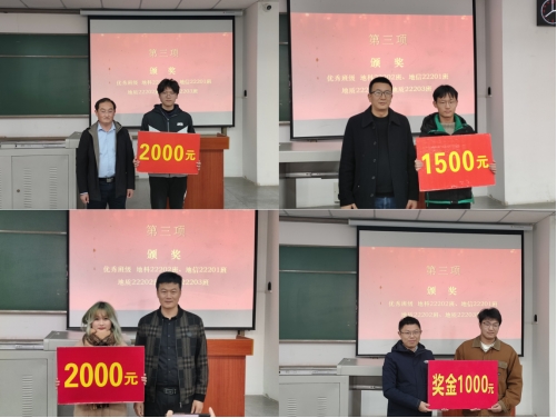 随后,地质系主任李涛、石油系主任饶松、地信系主任刘远刚以及地科系副主任刘圣乾为优秀班集体及个人颁发奖学金以资鼓励,同时颁发了22级班导的聘书,肯定了同学们的努力和所获得的成绩。