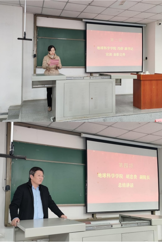 会议首先对22级英语四级考试中成绩优异的班级和同学进行表彰,由学院党委副书记冯舒老师宣读表彰文件,yl7703永利集团去年四级考试一次通过率为73.24%,其中地科22202与地质22202班的四级通过率均超过90%,且22级有三名学生四级分数超过600分。