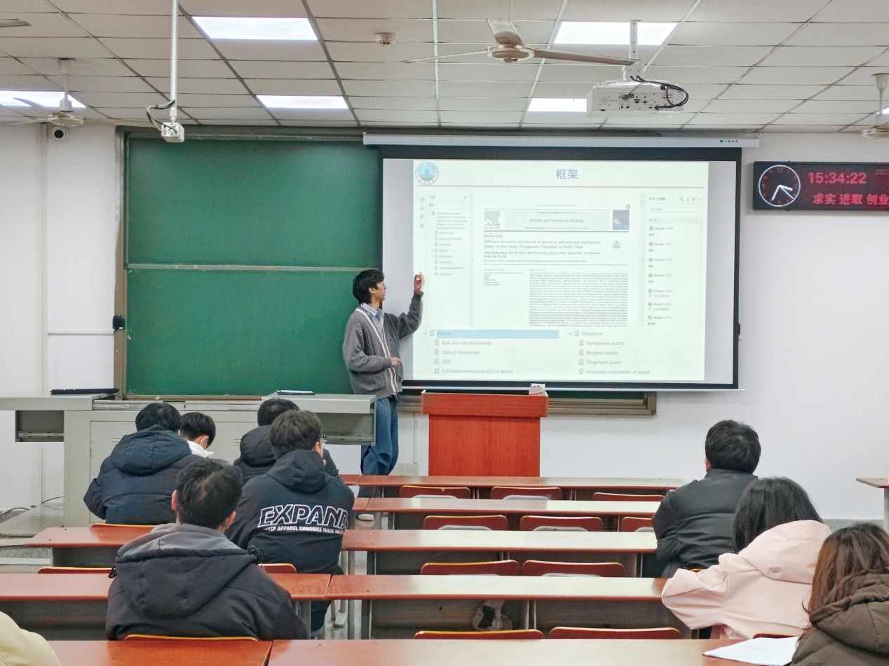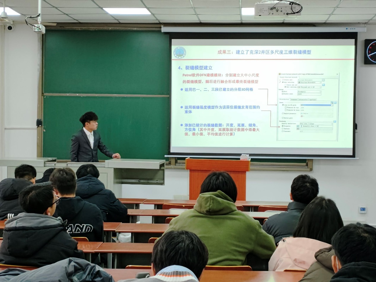 首先,罗骞从“裂缝性储层概念”、“多尺度裂缝表征”、“多尺度裂缝建模”三个方面分享了他的科研经历。他不仅介绍了自己的研究成果,还分享了在寻找创新点的过程中的心得体会。他说在他的研究工作中,编程扮演了关键的角色。使用适当的编程语言可以提高研究的效率,并为创新提供更广泛的可能性。