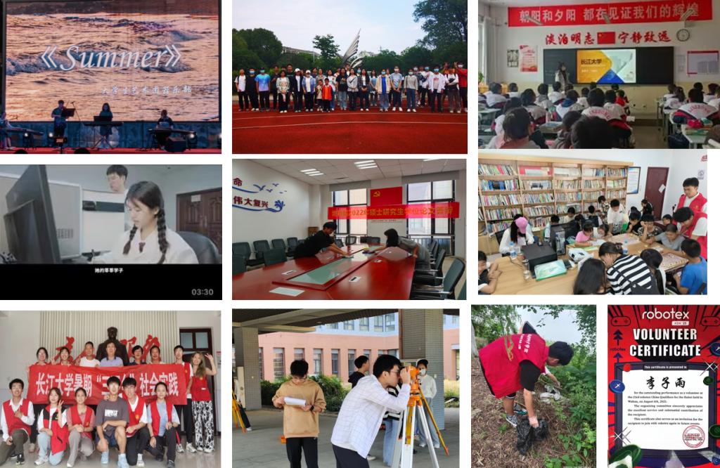同时大家积极参与社会实践活动、志愿活动,如组织策划能源文化节闭幕式表演、参加姚家林小学支教活动、多次组织参与各项羽毛球比赛并担任主裁、回访母校宣讲、代表地科院参与学校的百生讲坛总决赛、作为地科院学生代表出席yl7703永利集团第五次学生代表大会、参与20年校庆视频拍摄、办公室卫生打扫、校园清扫、暑期三下乡社会实践、担任第23赛季Robotex湖北省赛区武汉站的志愿者、2023级新生迎新、受邀给全体地科院同学进行暑期社会实践宣讲等。