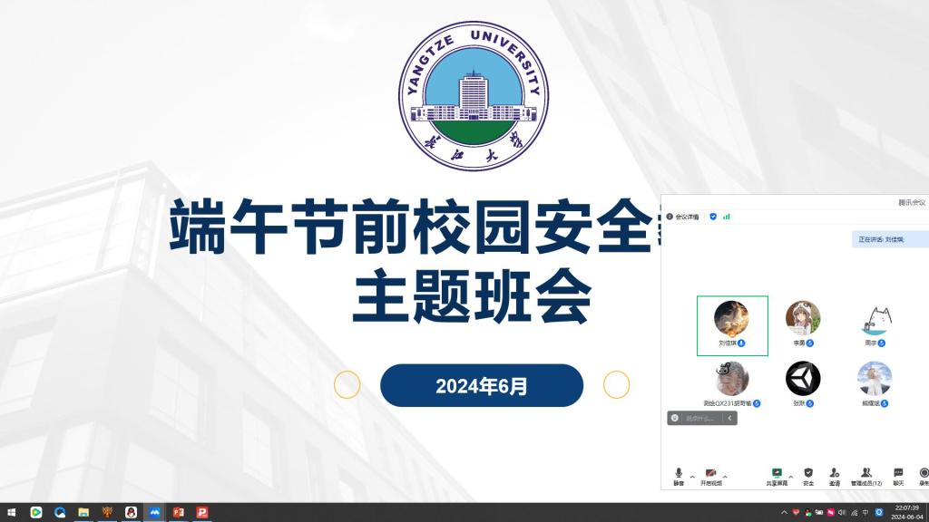 (通讯员 王晗)端午节临近,为增强我院学生假期安全防范意识,提升自护自救能力,确保学生愉快、平安度过节日。我院于6月4日组织全院本研究生召开端午节假期安全教育主题班会,以线上线下相结合的方式,由班主任或班委召开端午节假期安全教育主题班会,全面收集学生离校去向、时间及行程安排。