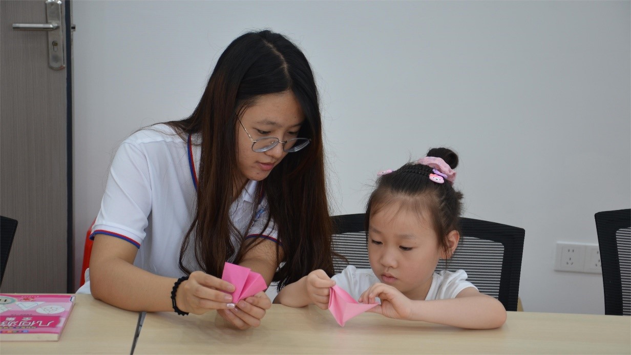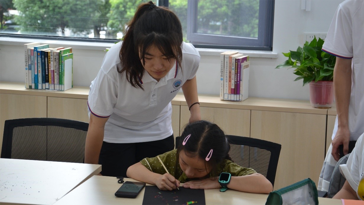 折纸、画画、下棋、猜谜语……孩子们在队员们的陪伴下玩得不亦乐乎。孩子们与队员们积极互动,笑声不断,掌声连连,活动室里充满了快乐的氛围。为办好本次活动,我院“后浪”暑期社会实践队进行了精心的组织策划,提前与社区联络,了解孩子们年龄特点,准备了大量健康益智活动及游戏,让每个孩子都能发展兴趣,发挥特长。