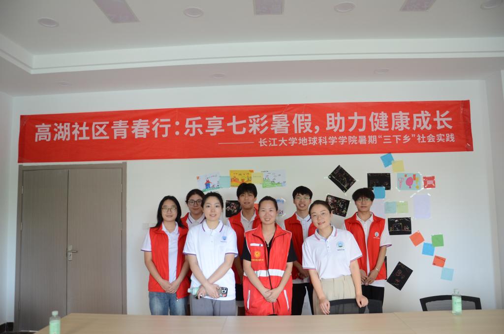 图1地科学院老师,高湖社区负责人以及“后浪”暑期社会实践队合影