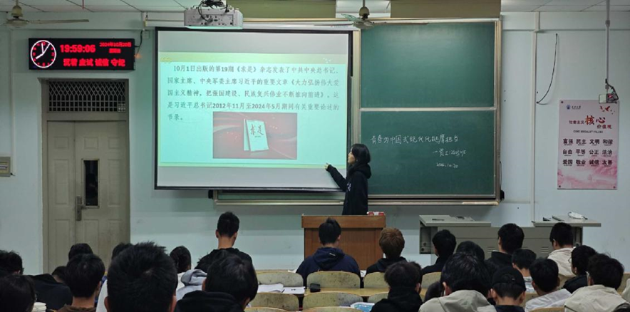 (通讯员 姜雨萌)为深入学习贯彻党的二十届三中全会精神,指导基层团组织紧扣党的中心任务,围绕党和国家重大战略,我院各团支部开展了10月主题教育实践活动。本月示范团支部是资工12403支部,由团支书姜雨萌同学主讲,资工12403支部全体同学参与。