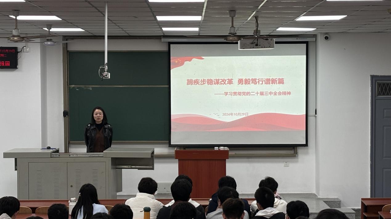 (通讯员 温锦林)为引导我院广大青年学生深刻理解党的二十届三中全会的重要意义,增强责任感和使命感。10月30日中午,我院在武教B107面向全体团员和青年开展了党二十届三中全会精神宣讲活动,由院团委书记郭霖老师主讲。