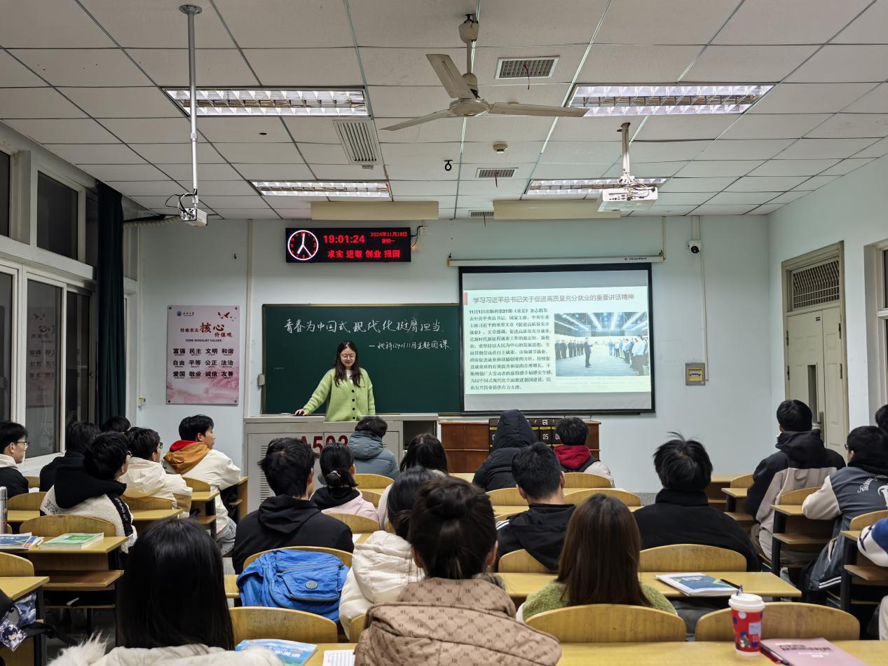 (通讯员 余美玲)为深入学习贯彻党的二十届三中全会精神,以全会精神赋能基层团支部、激活“三会两制一课”,我院各团支部开展了11月主题教育实践活动。本月示范团支部是地科12401支部,由团支书王彩蓓主讲,地科12401全体同学参与。