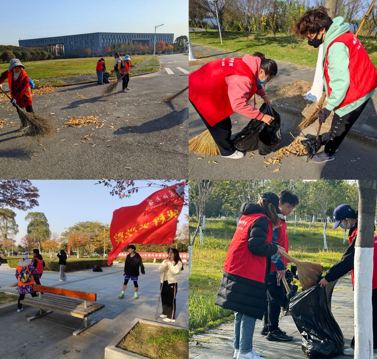 同学们于B教前集合,在负责同学有序地安排下,分成若干小组,明确各自的清扫任务。活动过程中,同学们积极参与、认真负责,齐心协力投入清扫工作。此次清扫活动不仅有地效提升了校园环境,还让同学们在实践中深刻体会到了环境保护的重要性,增强了环保意识与团队协作精神。