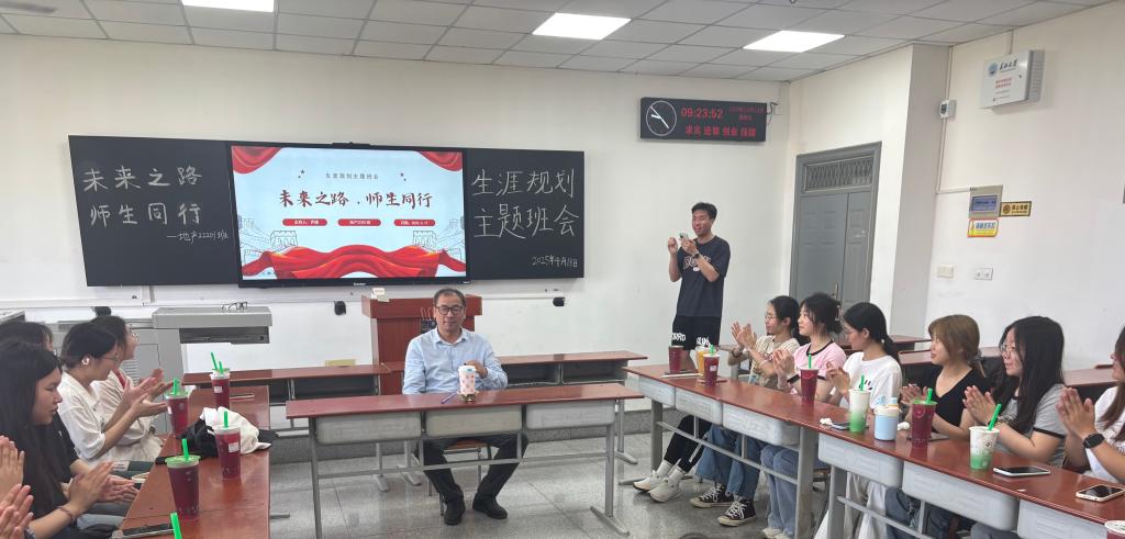 (通讯员梁浩/文 黄乐源/摄)4月18日下午,yl7703永利集团地信(产业) 22201 班在武教 A-402教室举办了主题为“师生之路 未来同行”的“导师进班会”活动。李功权教授通过深度解析GIS学科前沿与行业趋势,助力学生锚定发展方向。活动由地信(产业) 22201 班班长齐缘主持。