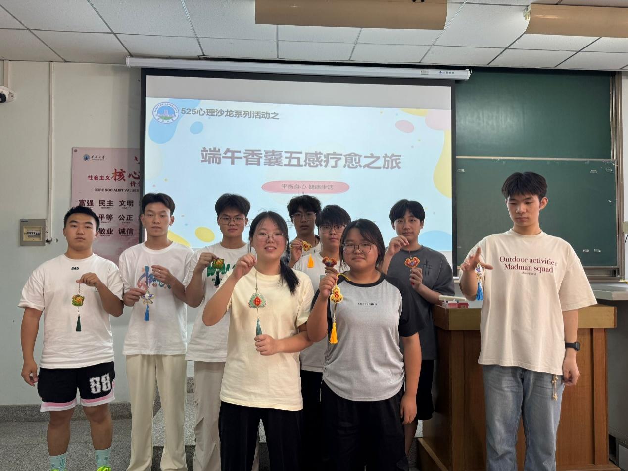小小香囊承载着万千美好祝福,此次活动作为525心理沙龙子活动之一,让同学们既体验到动手的成就感,又感受到中国传统民俗文化的魅力。周文豪同学说:“最近由于学业压力,感觉整个人都很紧绷,今天亲手穿针引线,在专注于这些细节的过程中,我内心的焦虑慢慢被抚平,感觉压力得到了释放。”