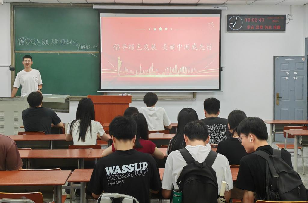 在活动总结环节,团支书成星星号召全体同学要将绿色发展理念内化于心、外化于行,从节约每一度电、每一张纸做起,将环保意识融入日常学习生活。同时勉励大家要以杨晟等优秀同学为榜样,在专业学习中练就过硬本领,在实践中培养廉洁品格,用实际行动诠释新时代青年的责任担当。