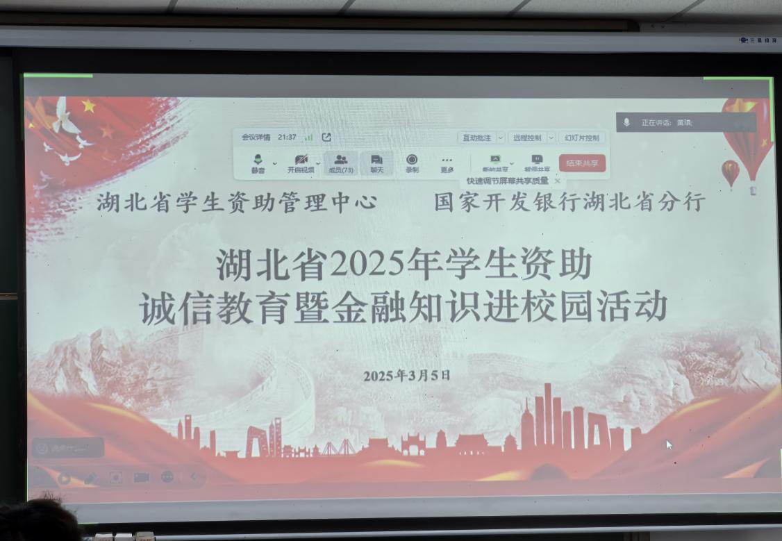 首先,史晓岩领学了《国家教育考试违规处理办法》《yl7703永利集团学生违纪处理办法》等文件,提醒非毕业年级本科生及研究生扎实复习,诚信应考。并集中观看《湖北省2025年学生资助诚信教育暨金融知识进校园》宣传片,提醒同学们树立诚信金融意识,远离电信诈骗,树立正确的消费观和价值观。针对毕业年级的就业签约问题,黄老师补充强调:“同学们应统筹安排好各用人单位的面试及签约,避免出现无故毁约等恶意行为,加强自我道德约束。”