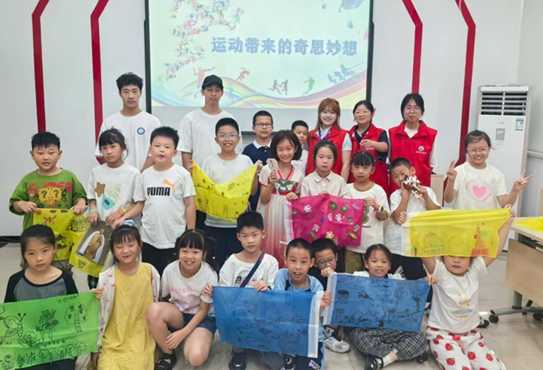 活动现场,志愿者们精心准备了丰富多彩的手工材料,以"运动旗"制作为主题开展教学。"大家可以充分发挥想象力,为队旗添加个性化的装饰,创作出独一无二的作品。"在志愿者老师的引导下,孩子们立即投入到创作的热情中。有的全神贯注地描绘图案,力求打造精美造型;有的细致耐心地粘贴装饰;还有的三五成群交流创意灵感,现场洋溢着欢乐 的笑声。经过一个多小时的精心制作,一面面色彩绚丽、创意十足的个性队旗陆续完成。孩子们自豪地举起自己的作品,向老师和同伴们展示创作成果。"看我的旗子,上面有灿烂的小太阳!""我的旗子挂起来一定最醒目!"稚嫩的童声中满溢着创作的喜悦和成就感。