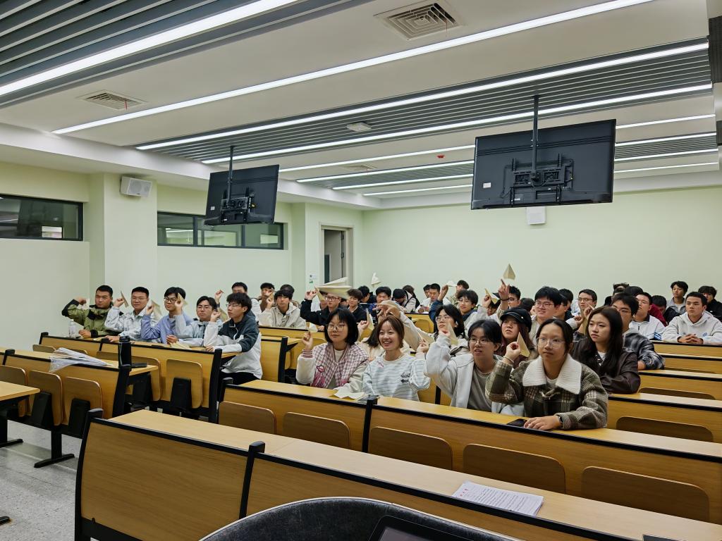 随后,各班级分批开展了“你的愿望我实现”主题活动,同学们将自己的小心愿写入纸条、投入“许愿箱”,并随机抽取成为彼此的“愿望守护者”,在接下来的一学期,努力帮助彼此达成心愿。活动在轻松氛围中促进了同窗情谊,也让温暖与关怀在班级中流动。在“放飞梦想,扬帆起航”环节,同学们认真写下对大学生活的展望与规划,将彩纸折成纸飞机。随着一片欢呼,五彩的纸飞机齐飞向空中,象征着同学们正式启航,一路顺风。