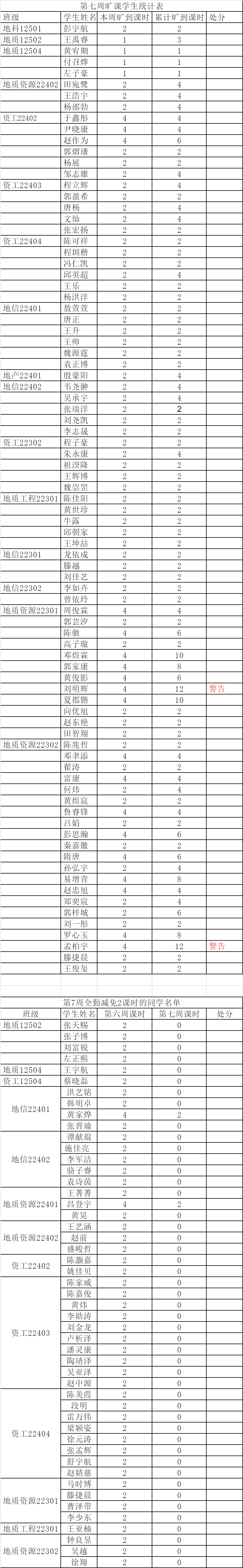 注:若学生某周存在旷课记录,但次周所有课程均正常到课(无迟到、旷课),则可从该生累计旷课课时中减免 2学时。