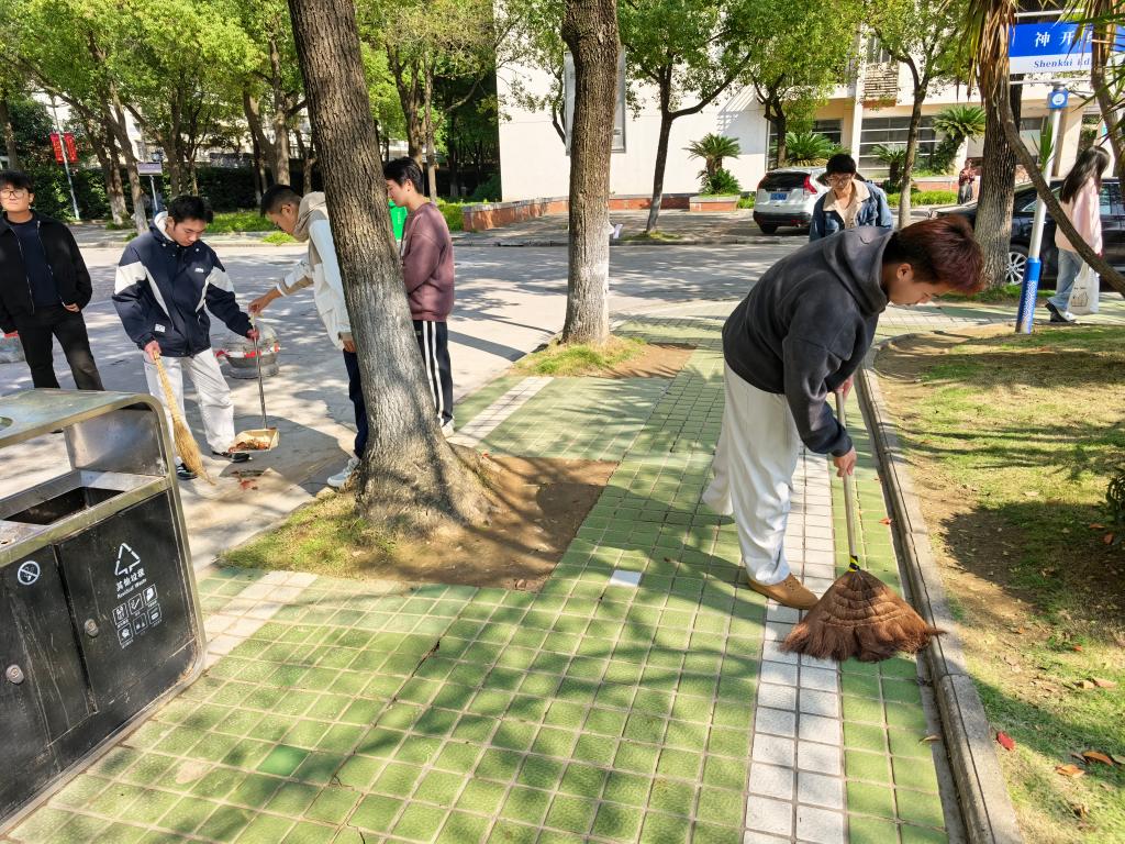 活动以班级为单位依次轮值。在学院专兼职辅导员带领下,同学们分工协作,对责任路段进行全面清洁,清扫路面垃圾、将电动车摆放整齐,使校园环境焕然一新。