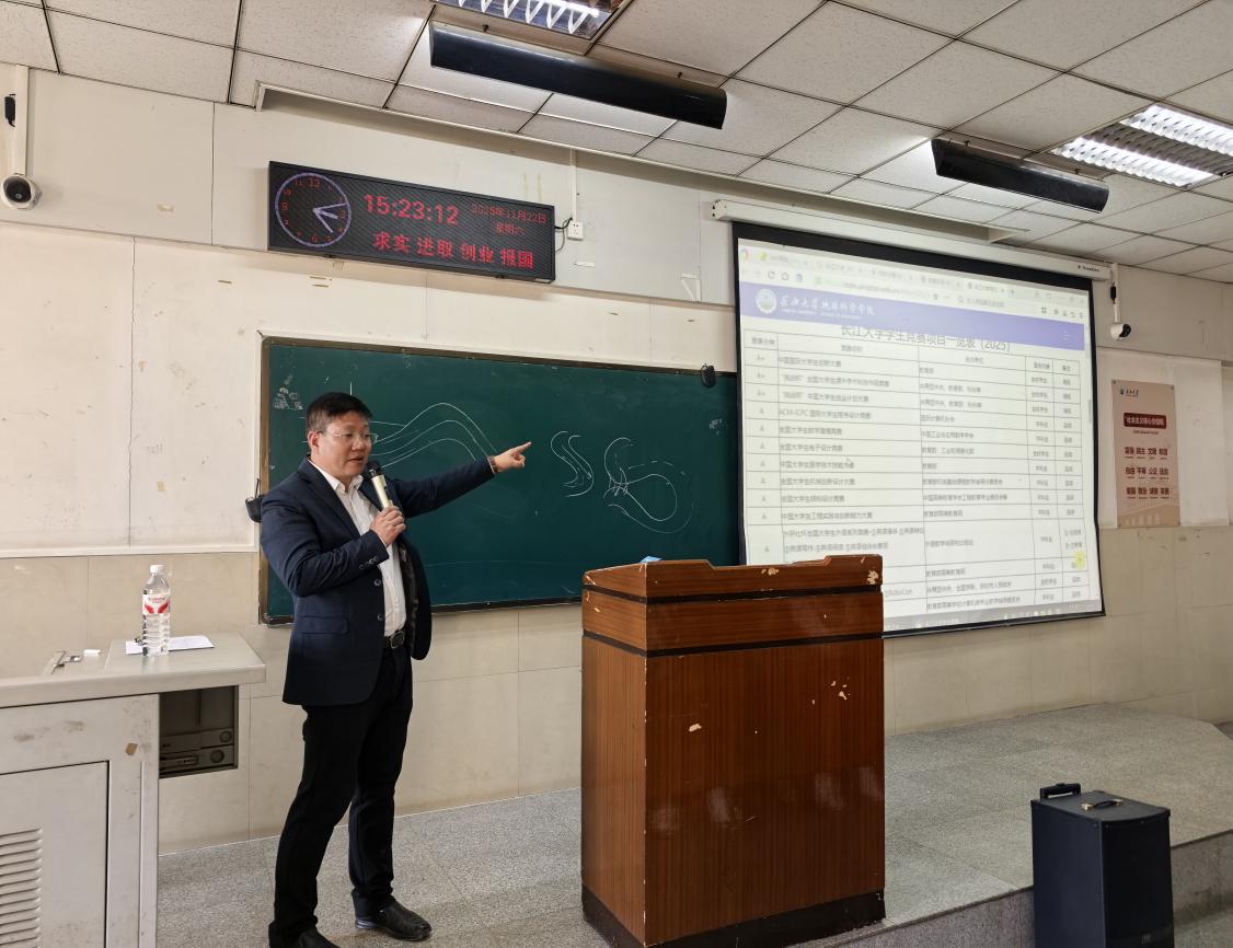 胡老师结合自身求学与工作经历,围绕“三维成长地图”展开深入讲解。他首先强调理论与实践相结合的重要性,带领同学们系统了解专业课程设置及各学期重点任务,鼓励同学们充分利用“慕课”“优课”等线上学习资源。胡老师鼓励同学们参观位于东校区的“三峡地质标本长廊”和武汉校区的“中国地质标本长廊”、积极参与野外实习,并善用AI工具辅助学习科研。胡老师寄语同学们:“希望大家尽早做好各阶段的学习规划,并有条不紊地推动落实,夯实专业基础。”