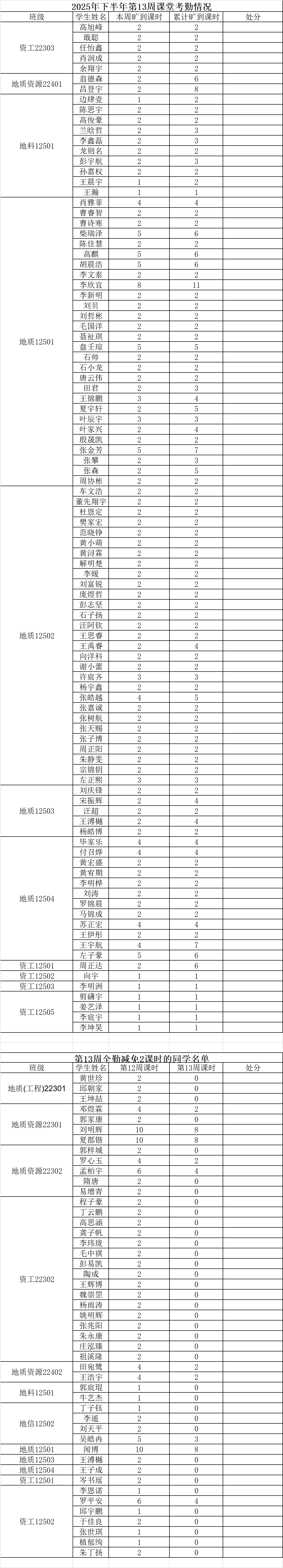 为落实学院关于加强学风建设的相关要求,进一步规范课堂秩序,营造良好的学习氛围,我院持续开展常态化课堂考勤工作。现将第十三周考勤情况通报如下: