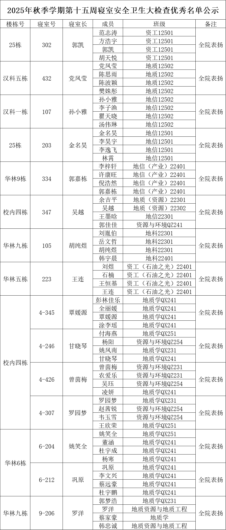 一、通报优秀寝室