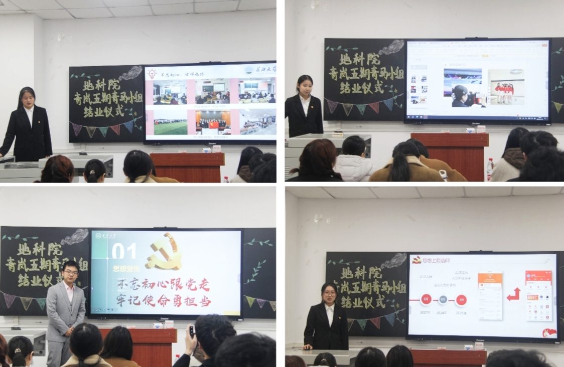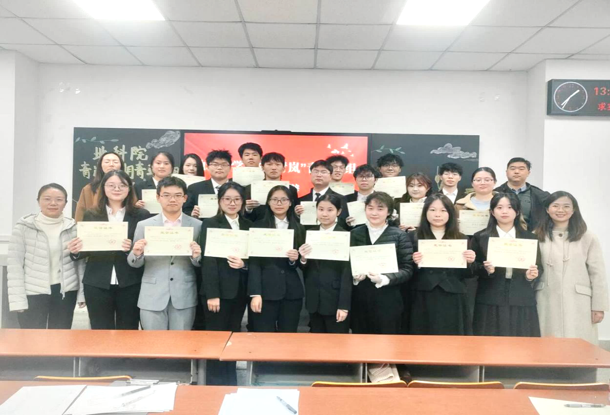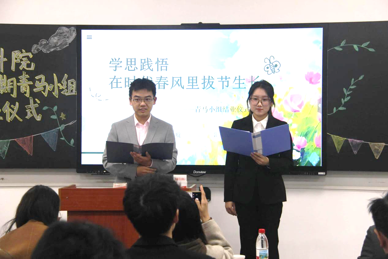 (通讯员 袁野 党宇烁)12月18日中午,我院第五期“青岚”青马小组结业答辩在A教101如期举行。学工办王红桥、郭霖、毕浩浩、乔宇四位老师与全体青马学员齐聚一堂,共同见证青春成长的蜕变时刻。 随着主持人简短开场致辞,结业展示正式拉开帷幕。“青岚”一组的王梓璇在答辩中表现亮眼,其优异的成绩和突出的竞赛成果生动诠释了青马学员“勤学笃行”的青春模样。同组的王彩蓓以“学业深耕、实干担当、思想铸魂”为核心,分享了作为团支书、学工助理深耕学生服务的经历,以及参与“青鸟计划”获评优秀实习大学生的实践感悟,尽显新时代青马学员“知行合一”的青春风采。 “青岚”二组的学员同样交出了亮眼的答卷。张铭涵在答辩中以“思想有信仰、学习有进步、能力有提升”为主线,展现了过硬的综合素质。她深耕红色理论,积极参与社会实践,并投身120余小时的志愿服务,生动诠释了新时代青年“以青春赴家国”的责任担当。同组的郭嘉栋作为24级首批入党积极分子,凭借14149分学习强国积分、红色实践成果3次获官方展示、95.62小时公益服务、思政课程全90+的表现,尽显青马学员“学思践悟、实干担当”风采。 点评环节中,毕浩浩老师赞扬学员们将理论学习融入实践、服务社会,做到了“在学中干、在干中学”。同时,也围绕内容深化等方面提出针对性建议,鼓励学员们以结业为新起点,努力奋斗、勇攀高峰。随后,四位老师为学员们颁发结业证书,鲜红的证书承载着学院的认可与期许,也见证着每一位学员的成长与进步。活动最后,全体师生共同合影留念,为本次青马学习之旅画上圆满句号。 此次结业答辩既是青马工程培养成效的集中检验,更是青年理想信念的生动展现。未来,我院青马学员将继续以青春之我、奋斗之我,在理论学习中坚定信仰,在实践磨砺中增长才干,在服务社会中勇担使命,以实际行动诠释新时代青年的责任与担当。 (审核 冯舒 编辑 毕浩浩)