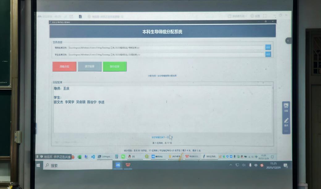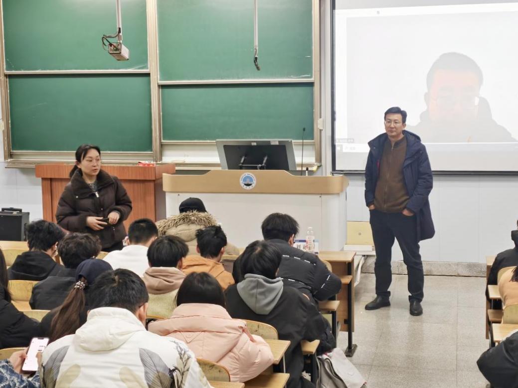 刘老师介绍了“导师组”启动会的目的与意义。随后,他现场连线武汉校区的各位导师,老师们虽远在异地,仍通过视频亲切表达了对学生们的深切关怀与期望。接着,井然老师详细介绍了导师分配的总体方案、人员调整机制及后续工作安排,并现场使用导师分配系统,顺利为全系同学完成导师匹配。最后,陈华军老师与崔海福老师分别结合自身经验,就学业规划、学习方法、科研实践参与等方面向同学们提供了具体建议,鼓励大家积极与导师沟通,夯实专业基础,提升综合能力。
