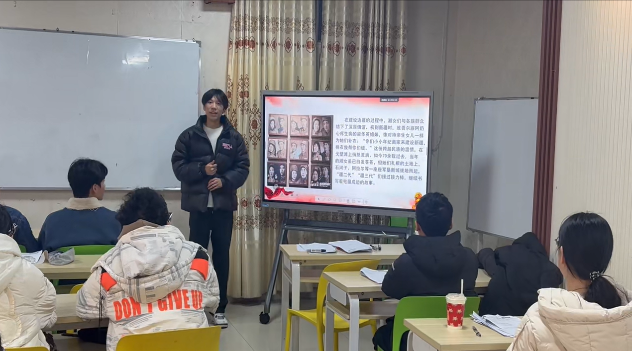 湘土诵红魂,青春承使命。学员袁屿钦回到家乡湖南湘潭,以 “红色湘江・青春传承” 为主题,走进当地高三学生中开展红色爱国主义宣讲。他围绕湖湘红色记忆,讲述 “半条被子” 的鱼水深情与 “八千湘女上天山” 的家国担当,带领即将迈入人生新阶段的高三学子重温烽火岁月的坚守与奉献。宣讲现场静谧无声,同学们时而沉思、时而动容。一名学生表示,终于明白革命先辈也曾如自己一般年轻,他们的担当坚定了自己服务社会的决心。