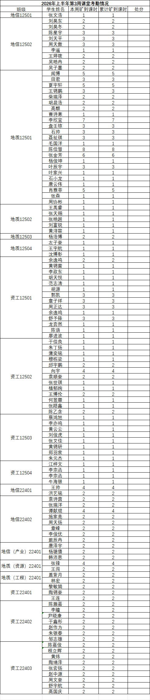 为落实学院关于加强学风建设的相关要求,进一步规范课堂秩序,营造良好的学习氛围,我院持续开展常态化课堂考勤工作。现将第三周考勤情况通报如下: