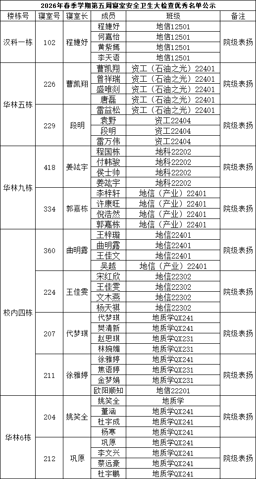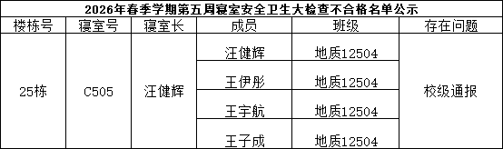 关于2025-2026学年第二学期第5周寝室安全卫生大检查情况的通报